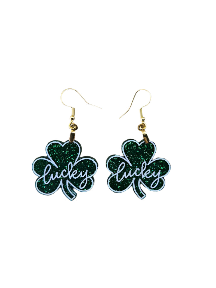 Meet our enchanting Green Glitter Clover Earrings, the perfect accessory to flaunt your Irish spirit this Saint Patrick's Day! These delightful earrings feature a shimmering green glitter finish that sparkles in the light, embodying the essence of luck and celebration. Each clover-shaped earring is beautifully engraved with the word "Lucky," making them not just a fashion statement but a symbol of good fortune.